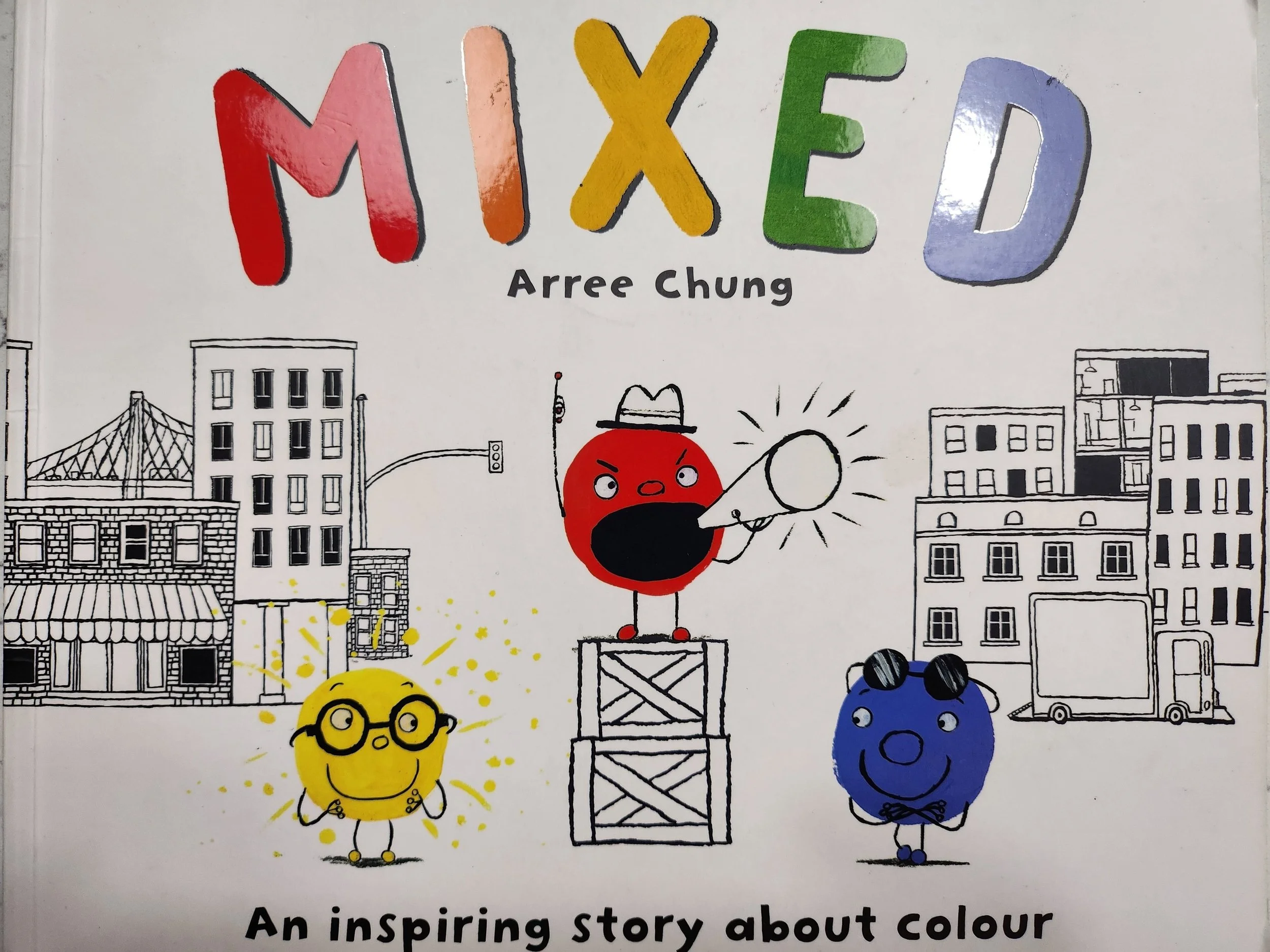 So ‘Mixed’ is a story that begins with three colours: the reds, yellows and blues. The reds were the loudest, the yellows were the brightest and the blues were the coolest. For the most part, they all got along really well until they each started to think that they were better than the other. This is something that I think children will relate to in all sorts of situations, whether about the way they look or how good they are compared to others at different things. When this happens, children cause division within the class or friendship group (adults are very good at this too). And so in the story, exactly that happens. Each colour claims a part of the city and makes it their own, deciding to live separately from one another.